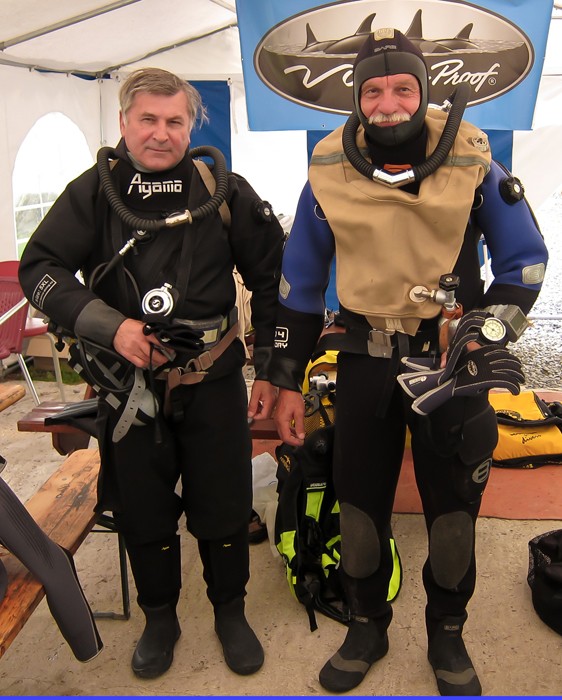 Jak jsme přicházeli k vodě, vzbudili jsme u potápěčů údiv, co že to je za potápěčský vercajk a zda se s tím ještě lze potápět. Byli zde právě potápěči s přístroji jak s otevřenými okruhy, tak i s rebreathry a bylo zajímavé porovnat tuto dnešní potápěčskou techniku s výrobky zhruba o padesát let staršími. Našel se však i jeden takový, který řekl, že „takový malý přístroj by mu vyhovoval, než tahat na zádech ty těžké láhve“. Po vzájemné kontrole a posledních snímcích před sestupem jsme se s Jardou vrhli do vody. Jarda vzal s sebou do vody foťák pro dokumentaci našeho společného ponoru. Po zanoření do větší hloubky jsem byl docela překvapen, že i v pěti, šesti metrech, automatika dávala dostatek vzduchu a docela pohodlně se s přístrojem potápělo. Vyzkoušel jsem všechny možné polohy při plavání pod vodou. Samozřejmě není to potápění jako s automatikou MK25/S600 firmy Scubapro, ale bylo srovnatelné jako potápění tehdejší s přístrojem Rekord s automatikou AV2.
