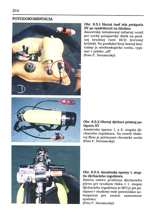 Můj přítel prof. MUDr. František Novomeský, PhD., kterého znám již od začátku sedmdesátých let XX. století, je nejen zkušený potápěč, ale především vynikající soudní znalec pro hyperbarickou a potápěčskou medicínu, úrazy a smrtelné nehody při potápění. Zúčastnil jsem se převážné většiny jeho přednášek v rámci školení instruktorů potápění, na kterých nás informoval o nehodách, jejich příčinách a následcích, často s detailní fotodokumentací. Některé fatální prezentované případy mám stále v živé paměti.