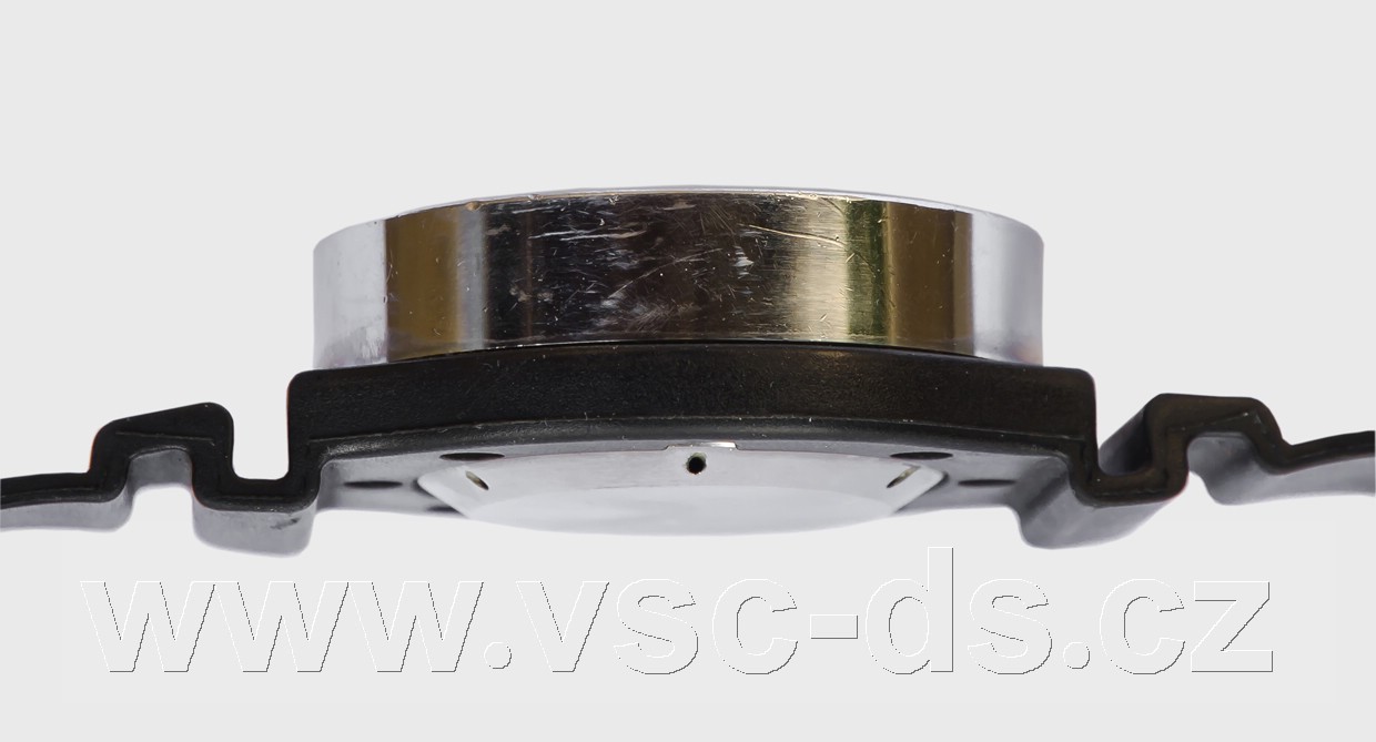 Hloubkoměr je robustní a odolný proti nárazům. K pryžovému řemínku je fixovaný šesti šrouby.